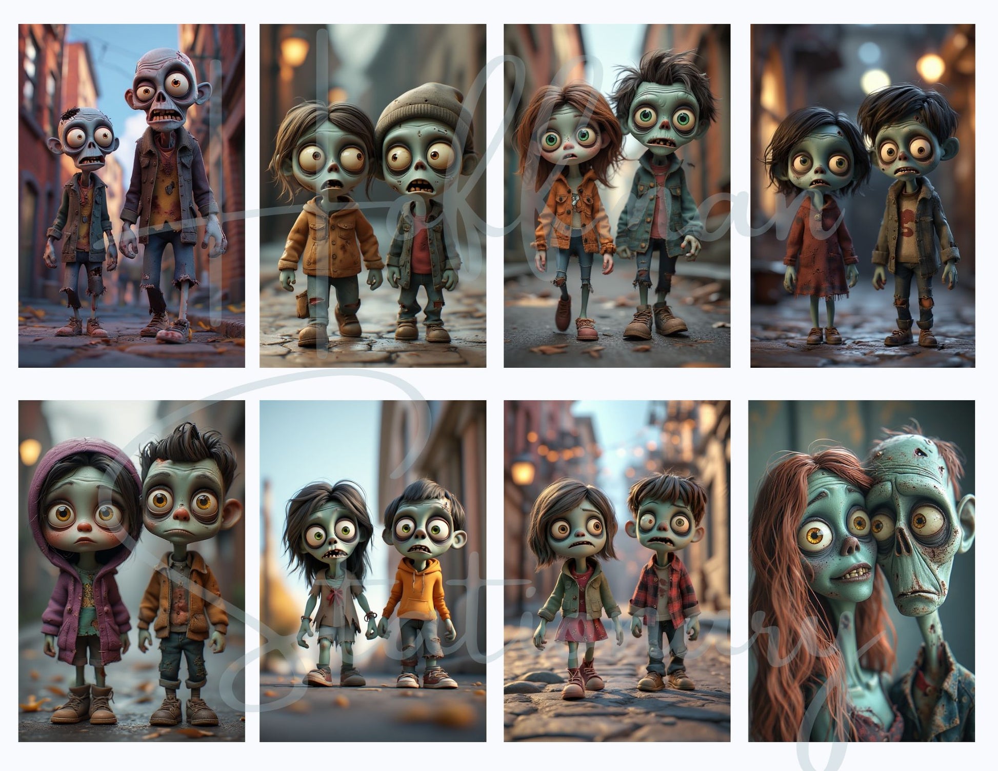 Meet the Zombie Darlings—a digital image series where the undead are more bewildered than bloodthirsty. These eerie cuties stumble through the shadows with wide, glassy eyes and puzzled little expressions, as if they’re not quite sure how they ended up in the afterlife. Stitched smiles, crooked bows, and pastel tones give them the perfect balance of haunting and adorable.